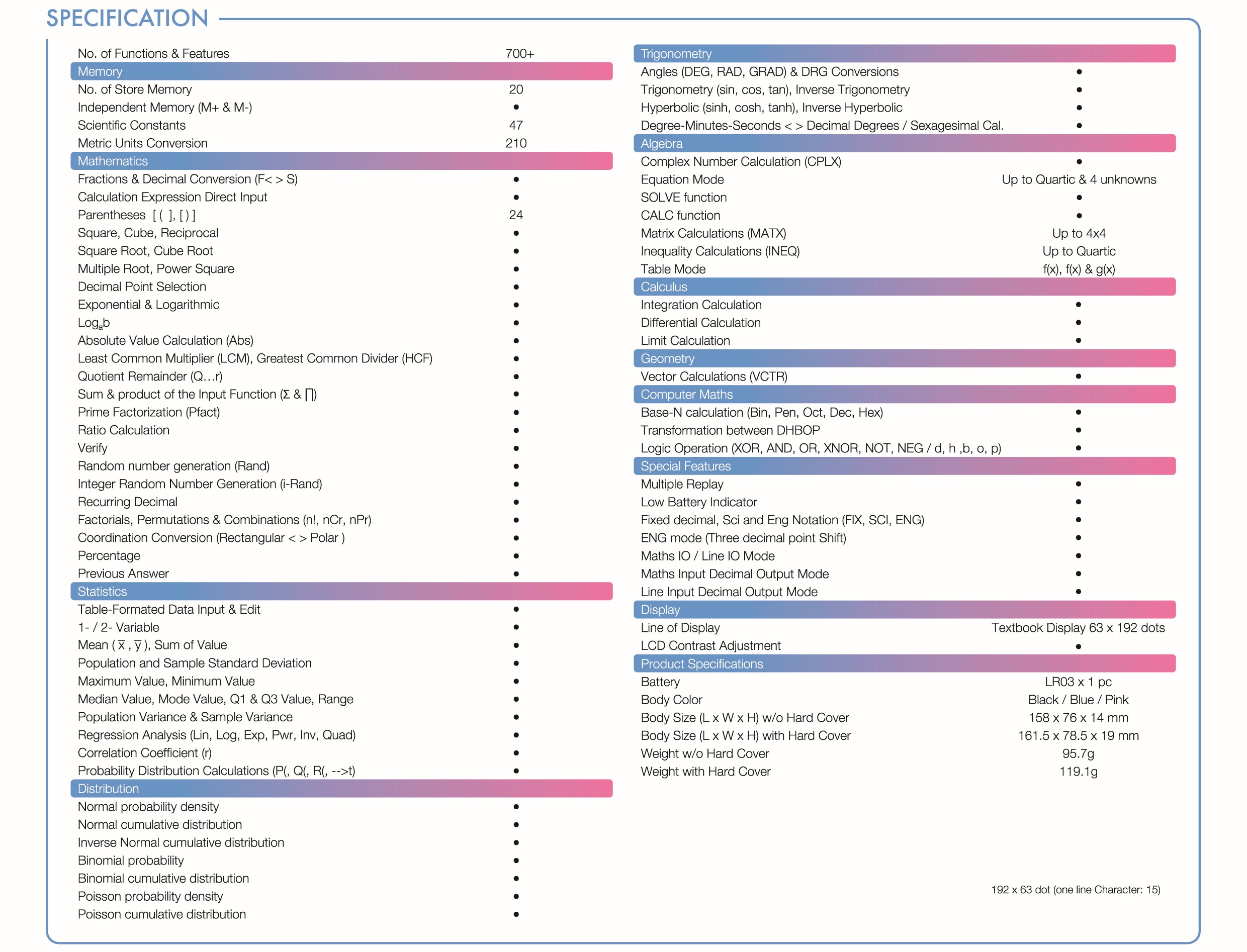 Specially designed for SPM examination, High resolution display, Non-programmable scientific calculator. 3 years Warranty.